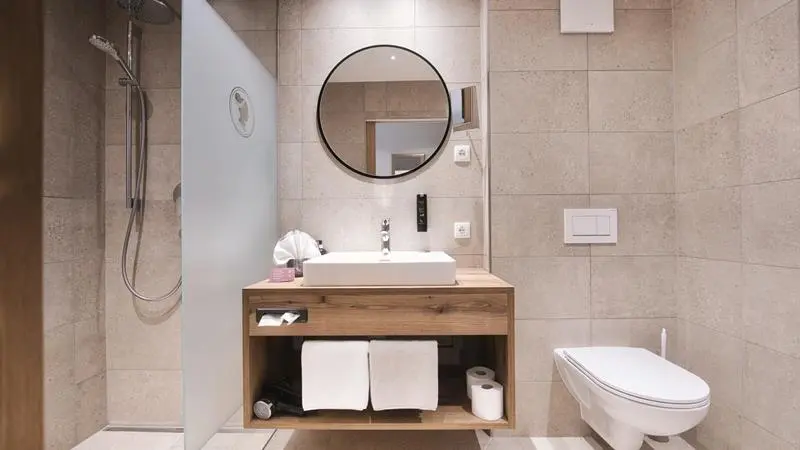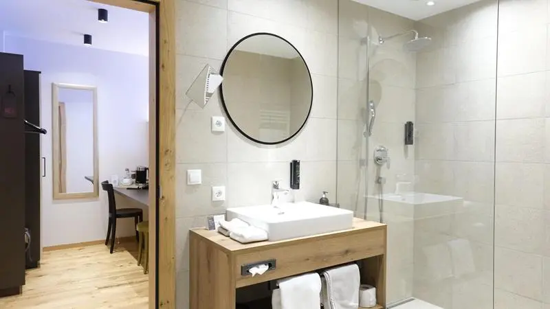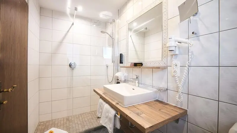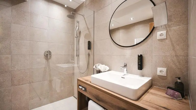 - Holzboden aus Eichenholz großzügiges Badezimmer Rainshower